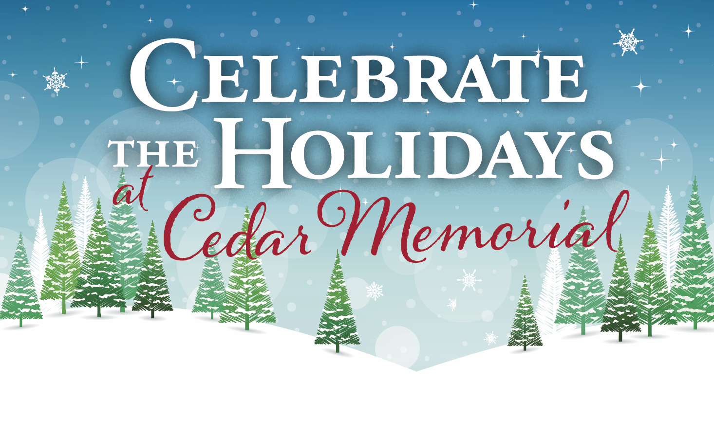 Cedar Memorial has been a part of holiday traditions for over 90 years, and we again welcome the community to Celebrate the Holidays. Join us for this special one-evening event on Sunday, December 14 from 4:00 to 8:00 p.m. at the Cedar Memorial Park Chapel of Memories Mausoleum.